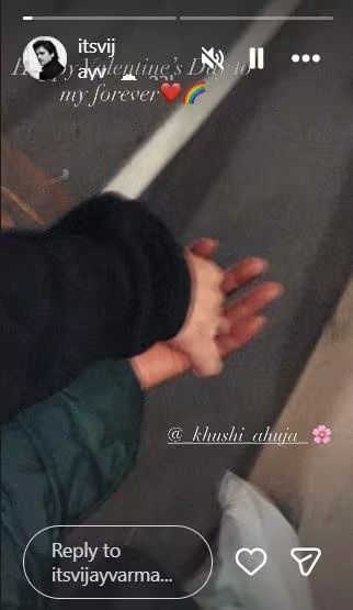 दरअसल, वैलेंटाइन डे के मौके पर विजय वर्मा ने इंस्टाग्राम पर एक पोस्ट शेयर किया था. उन्होंने इंस्टाग्राम स्टोरी पर एक फोटो शेयर की. जिसमें वह किसी लड़की का हाथ थामे दिख रहे हैं. हालांकि पोस्ट में सिर्फ दोनों के हाथ थामे हुए की फोटो दिखाई दे रही है और इसमें किसी का चेहरा नहीं दिख रहा है.