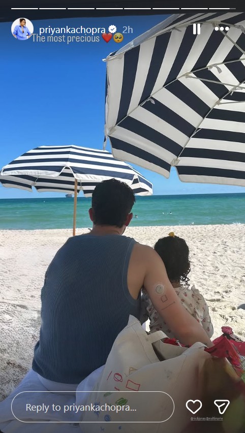 प्रियंका चोपड़ा ने अपनी इंस्टाग्राम स्टोरी पर एक प्यारी सी तस्वीर शेयर की है. इस फोटो में निक जोनस और मालती समुद्र के किनारे नजर आ रहे हैं. हालांकि, प्रियंका ने ये फोटो बैक साइड से क्लिक कर शेयर की है.