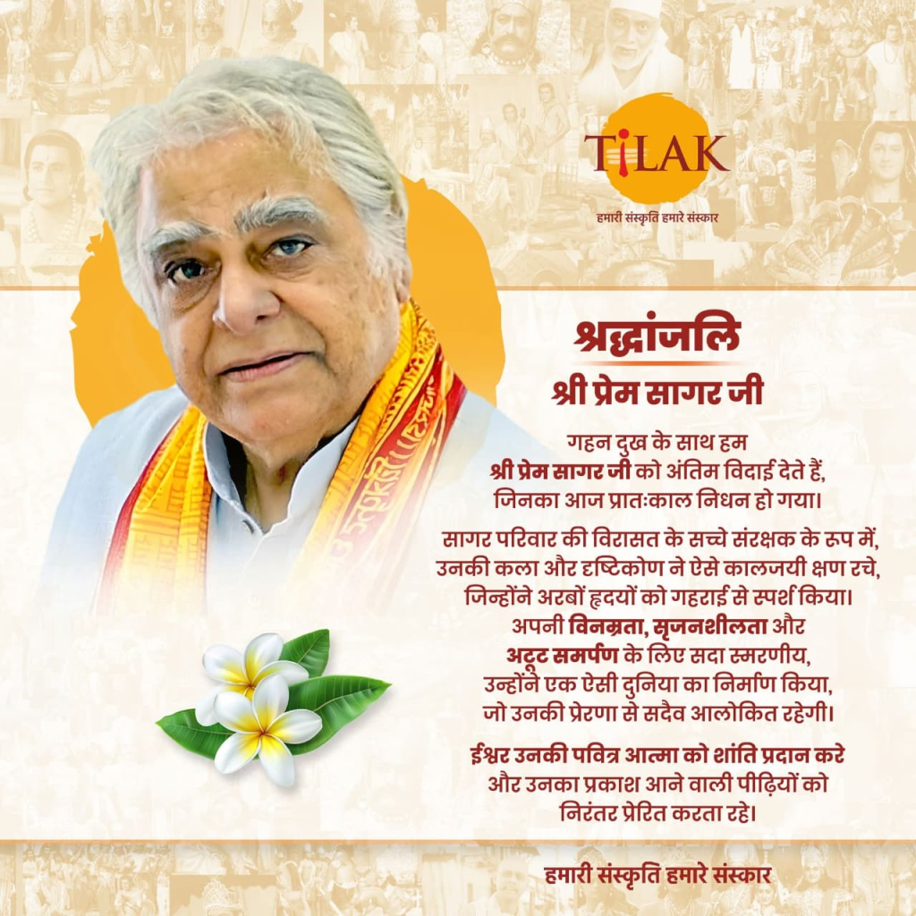 Ramanand Sagar Son Prem Sagar Passed Away: टीवी के पॉपुलर शो रामायण के डायरेक्टर रामानंद सागर के बेटे प्रेम सागर का निधन हो गया है। उन्होंने 84 साल की उम्र में इस दुनिया को अलविदा कह दिया है। बताया जाता है कि उन्होंने आज 31 अगस्त की सुबह 10 बजे अपनी अंतिम सांस ली है। वह पिछले कुछ वक्त से बीमार चल रहे थे। बता दें कि आज रविवार को आई ये दूसरी दुखद खबर है, जिससे फैंस का दिल टूट गया है। इससे पहले पवित्र रिश्ता फेम टीवी एक्ट्रेस प्रिया मराठे के निधन की खबर आई जिन्होंने सिर्फ 38 साल की उम्र में कैंसर से लड़ते हुए इस दुनिया को अलविदा कह दिया है।