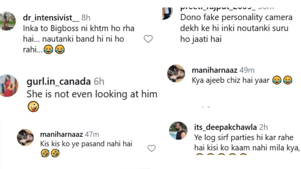 जैसे ही यह वीडियो अपलोड हुआ, यूजर्स ने आकांक्षा के डांस स्टेप्स को ‘अजीब’ और ‘बेतुका’ बताना शुरू कर दिया. कमेंट्स में लोग उनके एक्सप्रेशंस और बॉडी लैंग्वेज का मजाक उड़ा रहे हैं. एक यूजर ने लिखा, “क्या अजीब चीज है यार?” वहीं दूसरे यूजर ने कमेंट किया, “दोनों फेक पर्सनेलिटी, कैमरा देख के ही इनकी नौटंकी शुरू हो जाती है.” एक अन्य ने लिखा, “इनका तो बिग बॉस ही खत्म नहीं हो रहा. नौटंकी ही बंद नहीं हो रही है. कई लोगों ने गौरव खन्ना का जिक्र करते हुए कहा कि उनके जैसे शांत एक्टर की पत्नी इतनी अजीब हरकतें कैसे कर सकती हैं.