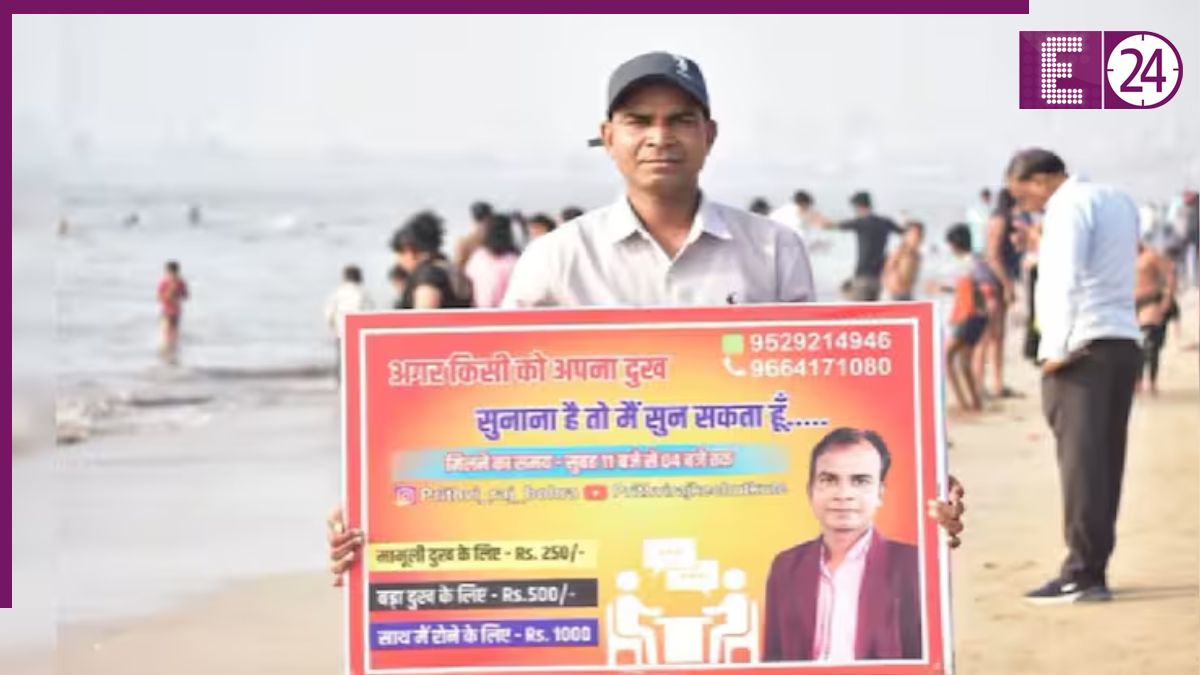 🚨 Mumbai Beach Viral : Man charges people to listen to problems.