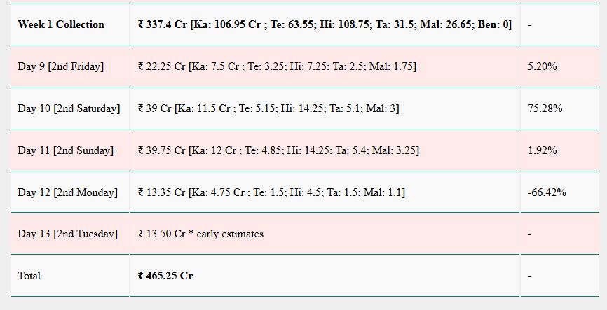 इसी के साथ Kantara Chapter 1 ने ऋषभ शेट्टी की ऑल टाइम ब्लॉकबस्टर फिल्म ‘Kantara’ का भी रिकॉर्ड तोड़ दिया. जहां ‘Kantara’ का लाइफटाइम बॉक्स ऑफिस कलेक्शन 309.64 करोड़ रुपये रहा था. वहीं, Kantara Chapter 1 ने सिर्फ 13 दिनों में 465.25 करोड़ की कमाई कर ली है. इसका मतलब साफ है कि ऋषभ शेट्टी अपनी ही ऑल-टाइम ब्लॉकबस्टर फिल्म का रिकॉर्ड तोड़ आगे बढ़ गए हैं.