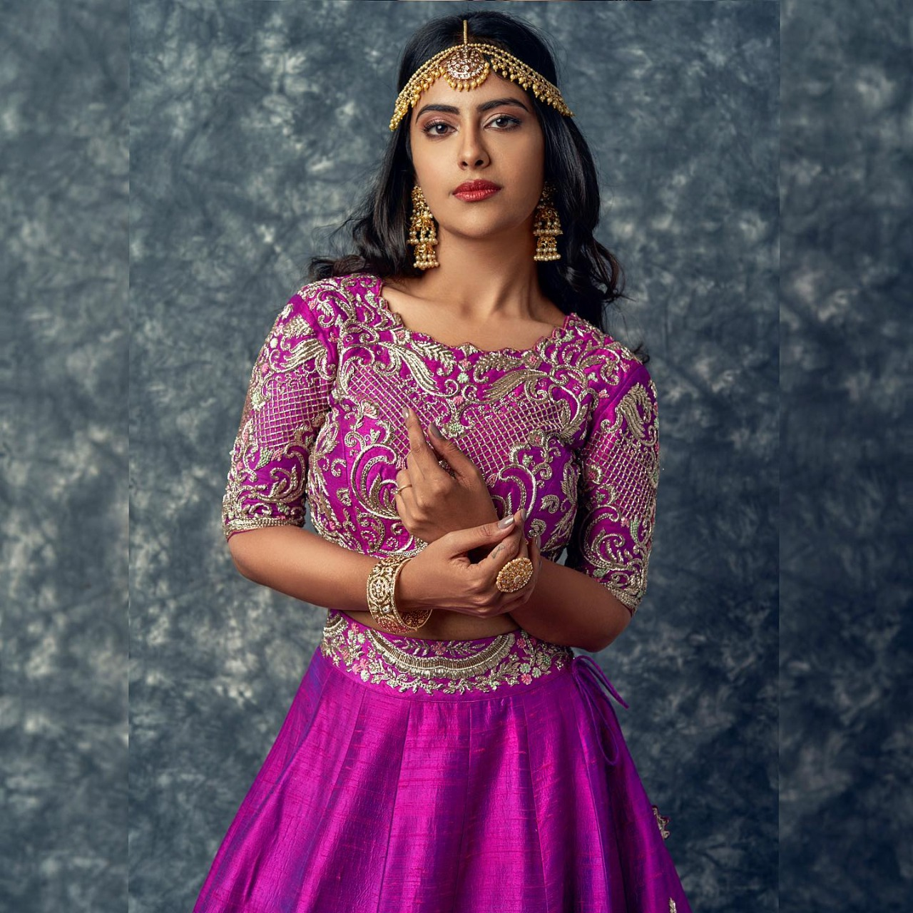 अविका पर्पल कलर का डिजाइनर लहंगा  पहने बेहद सुंदर दिख रही हैं।