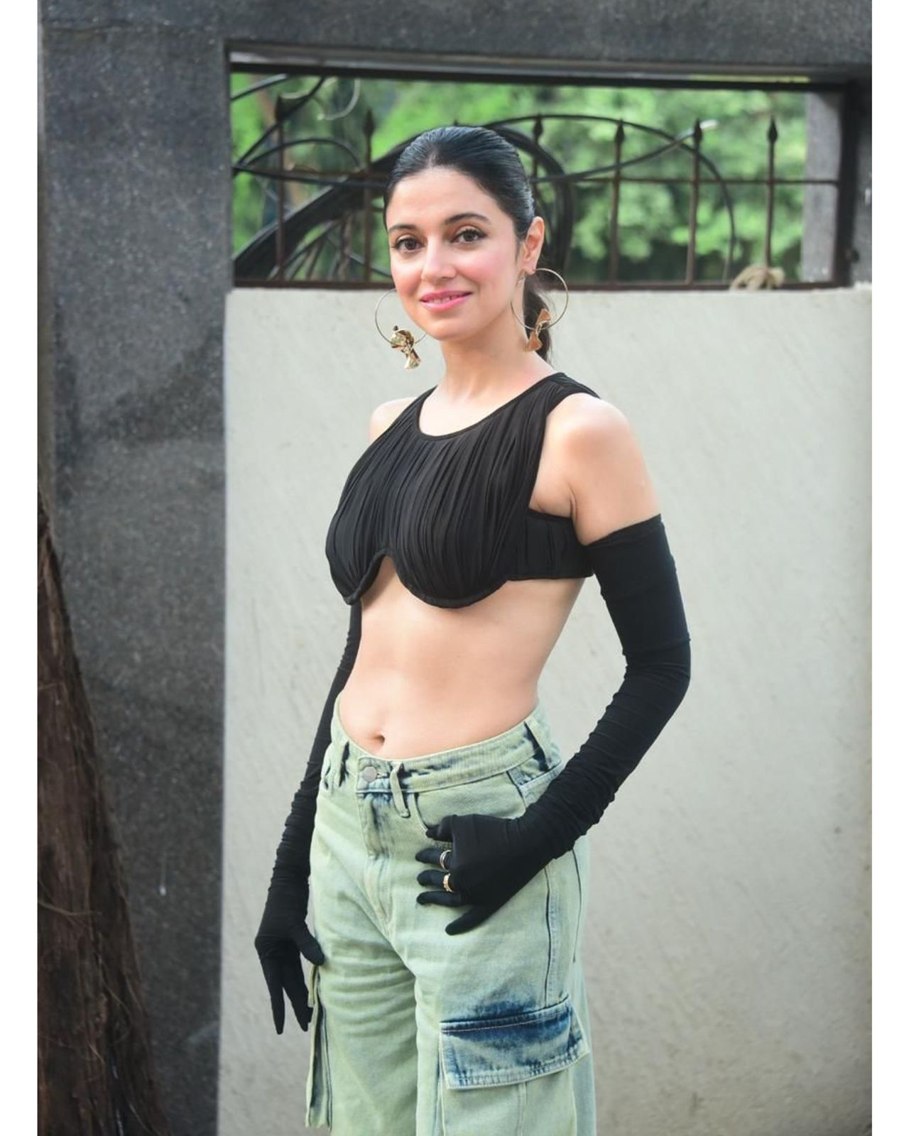 दिव्या खोसला कुमार ब्लैक क्रॉप टॉप और डेनिम में अपनी फिल्म का प्रमोशन करने पहुंची