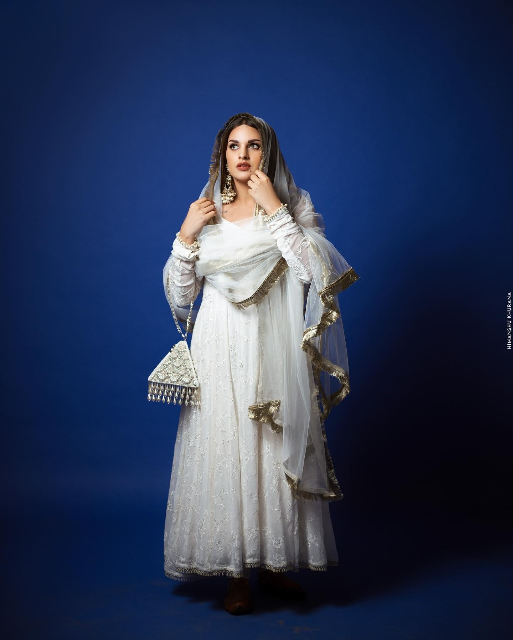 एक्ट्रेस हिमांशी खुराना ने हाथ में मैचिंग  बैग ले रखा हैं।