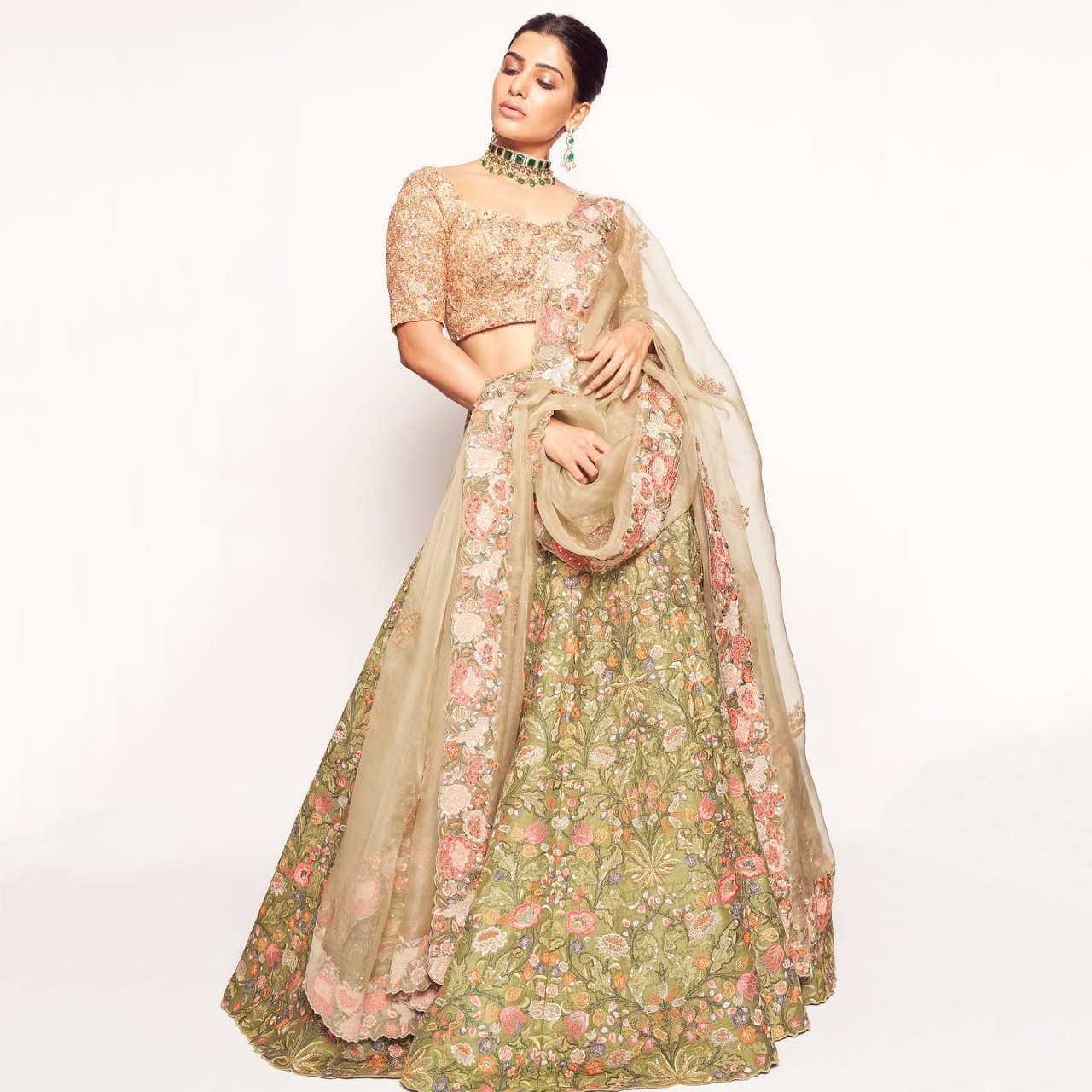 सामंथा का ग्रीन लहंगा उनकी खूबसूरती  बढ़ा रहा हैं।