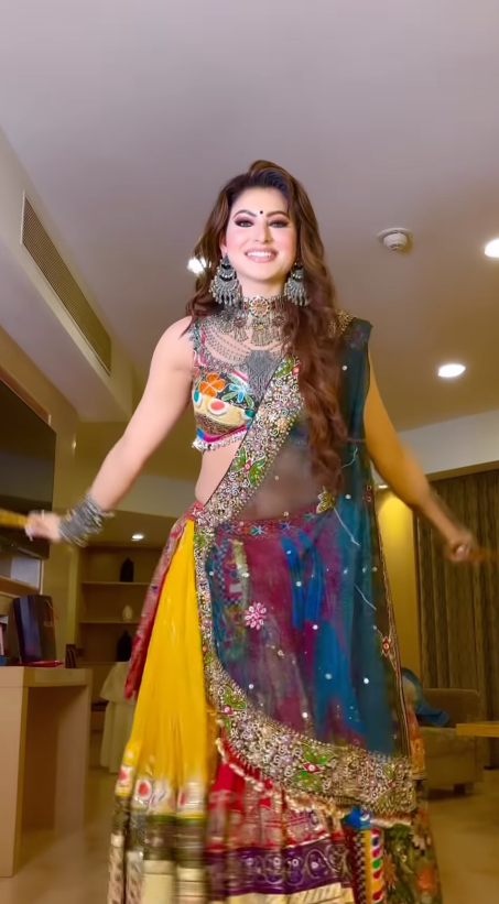 उर्वशी रौतेला ने वीडियो में मल्टी कलर का लेहंगा पहना हुआ है साथ ही उन्होंने हेवी जूलरी भी पहनी हुई है। इस लुक में एक्ट्रेस बला की खूबसूरत लग रही हैं।